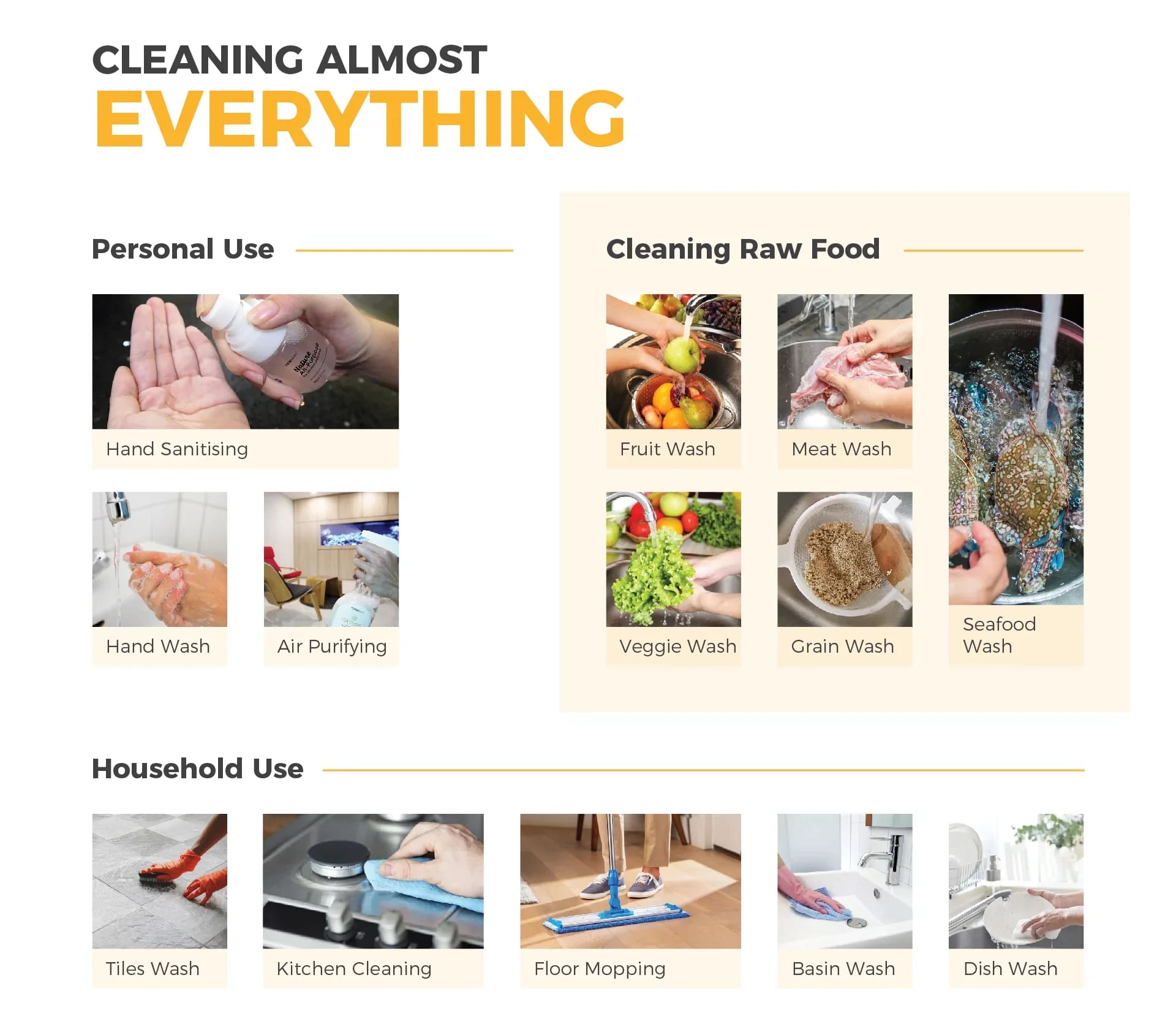 Suitable for all areas of the home including floors, furniture, kitchen, bathroom, clothes, etc.
