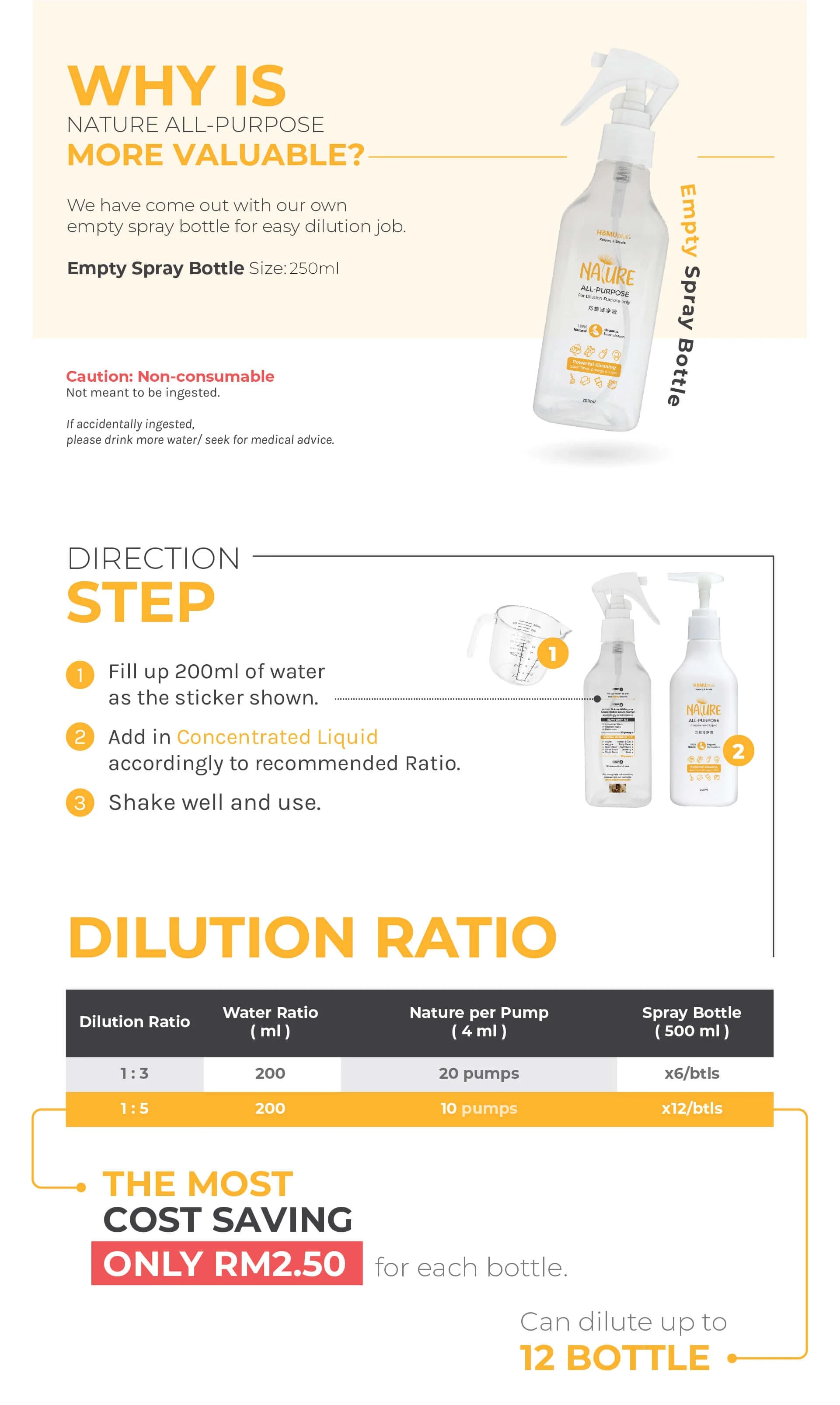 DILUTE : Add on Nature Concentrated Liquid and clean water(Follow the suggested ratio)