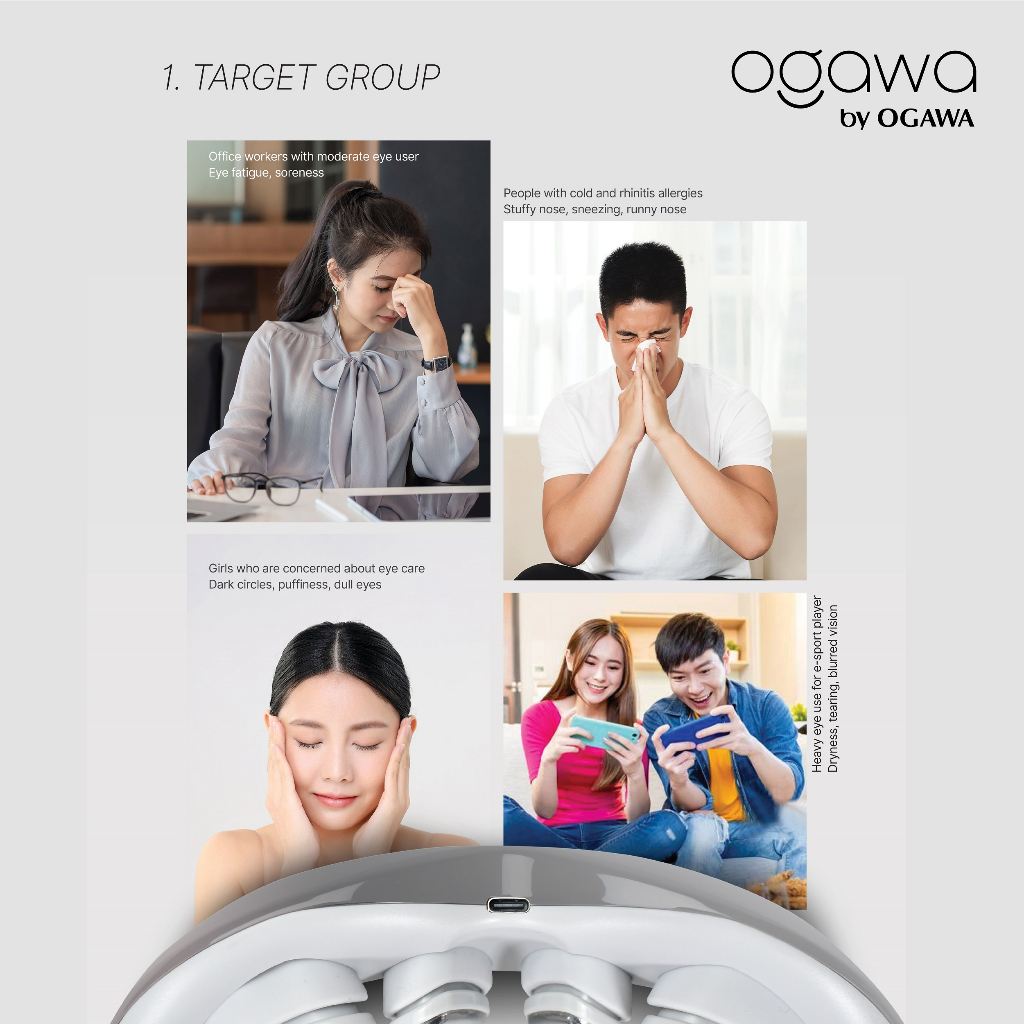 FOCUS ON TARGET GROUP ; - Office workers with moderate eye user - Eye fatigue, soreness. People with cold and rhinitis allergies -