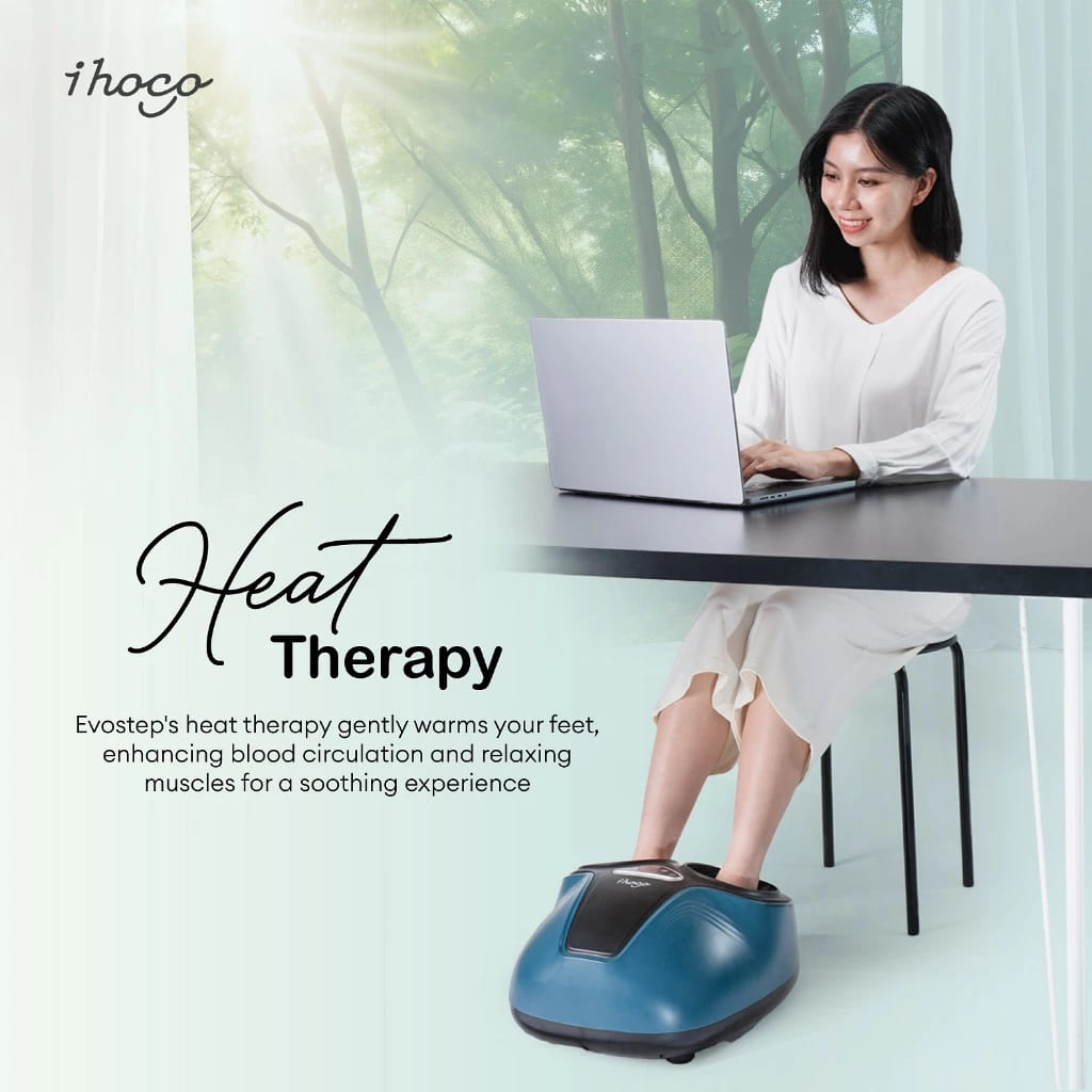 Evostep's heat therapy gently warms your feet, enhancing blood circulation and relaxing muscles for a soothing experience.