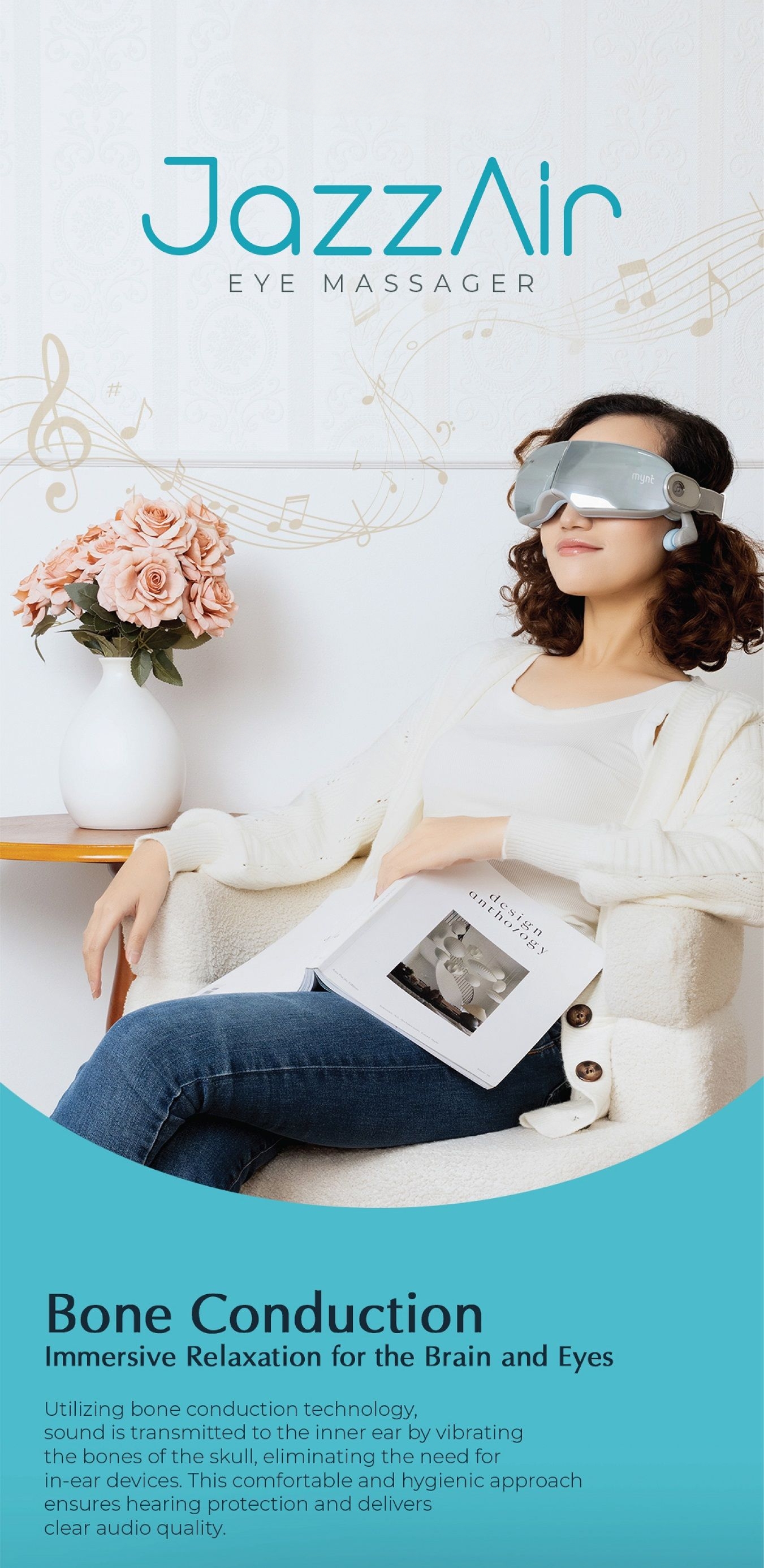 Bone conduction technology delivers clear audio while double-layer airbags and massage heads relieve eye strain and improve circulation.